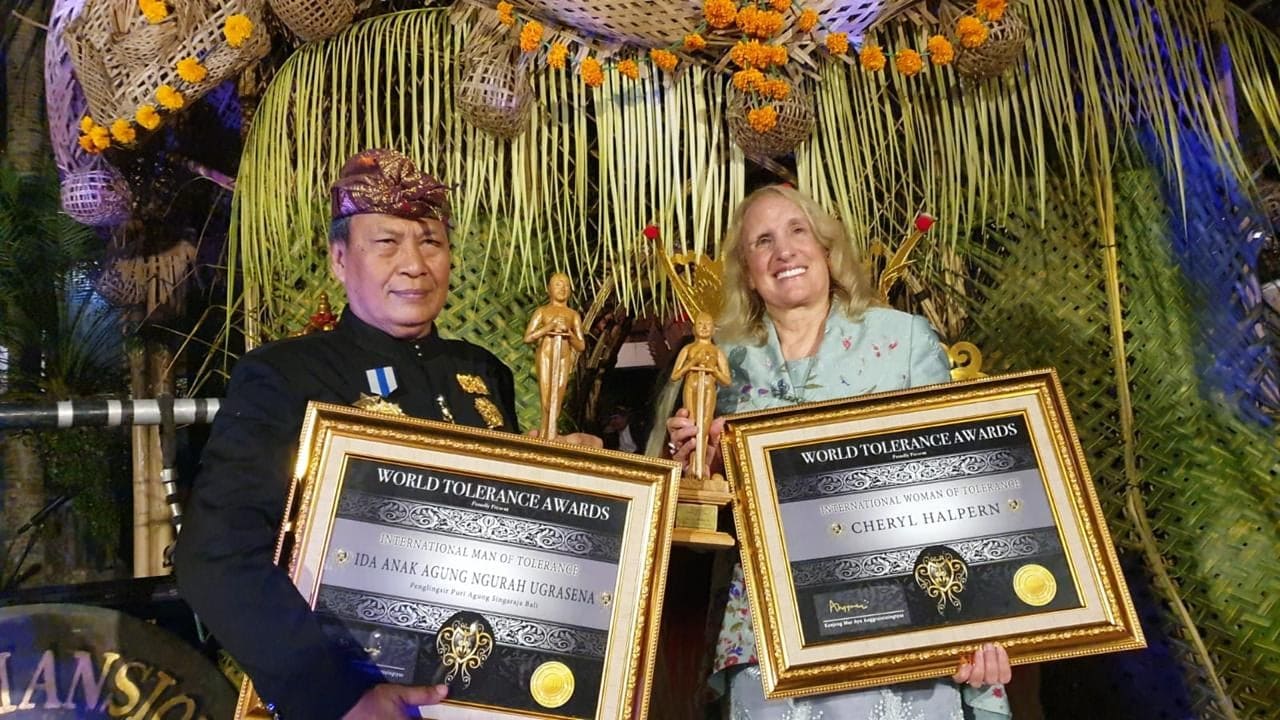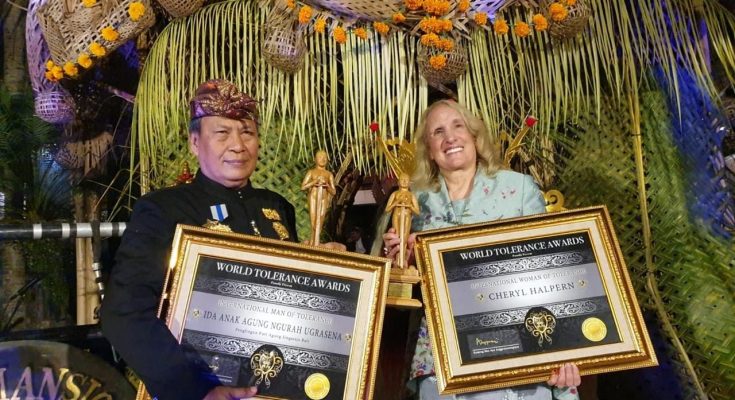 KabareTegal.com, Ubud-Bali – Raja Singaraja Anak Agung Ugrasena dan Sutradara AS Filantropis Cheryl Halpern meraih penghargaan ikon toleransi International Man of Tolerance dan International Women of Tolerance 2019 di Ubud, Bali.