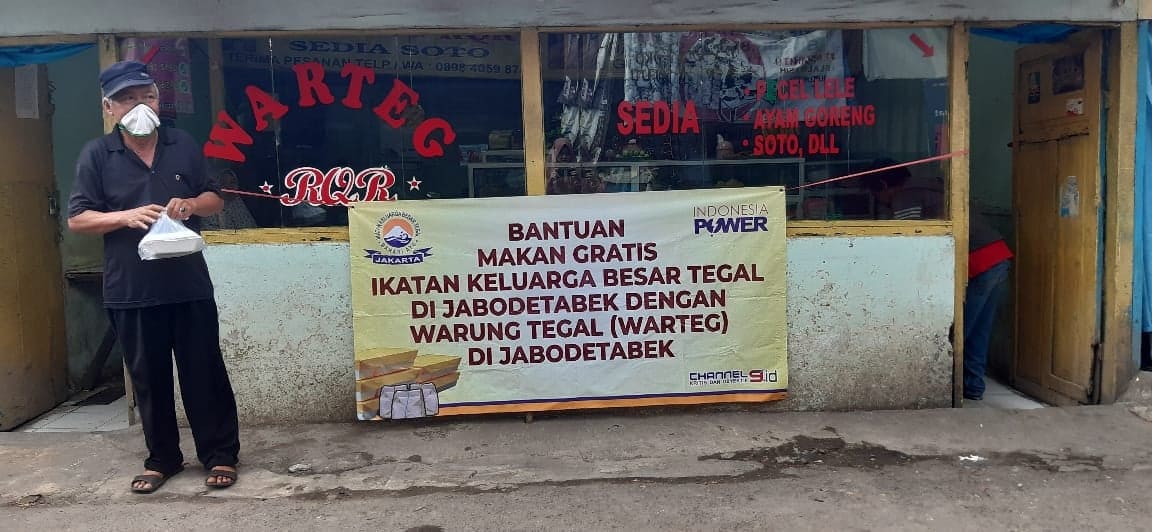 Melalui warung tegal (warteg), jalinan IKBT-BA & PT Indonesia Power membagikan 1000 nasi bungkus ke masyarakat terdampak Covid-19. Salah satu warteg yang dituju, yaitu Warteg RQR yang terletak di Jl. Darma Wanita 3 No.51 RT.02 RW.01 Jembatan Baru, Kel.Rawa Buaya, Kec. Cengkareng, Jakarta Barat.