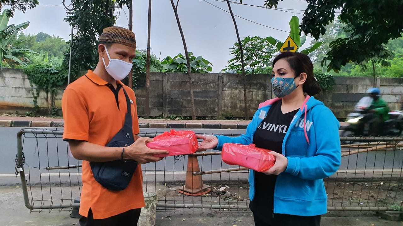 Meski mengenakan masker dan kacamata, ternyata banyak penerima nasi kotak yang mengenali Nia.