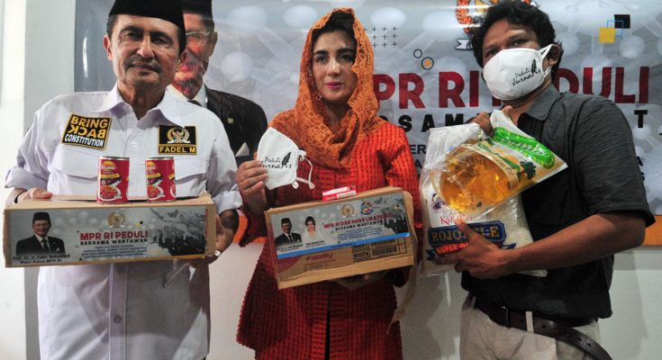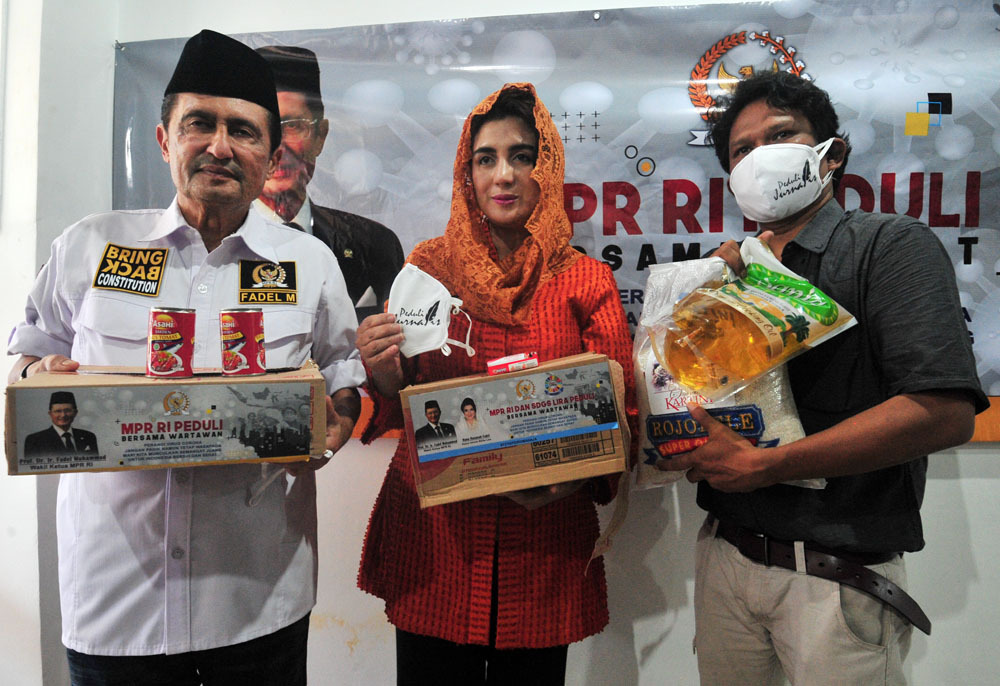 Sesaat sebelum pembagian paket sembako pada Selasa (12/5/2020), gerakan ‘Peduli Jurnalis’ juga mendapat kunjungan dari Wakil Ketua MPR, Fadel Muhammad beserta sang istri, Hana Hasanah yang juga merupakan pengurus Sahabat Kartini.