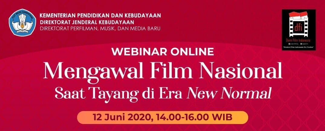 Merebaknya Corona Virus Disaese (Covid-19) berdampak segala sisi kehidupan, termasuk juga sangat berpengaruh dalam dunia perfilman. Kini memasuki masa transisi menuju new normal, insan perfilman merumuskan berbagai hal siap mengawal film nasional saat tayang di new normal. Hal tersebut mengemuka dalam acara Webinar Online bertopik ‘Mengawal Film Nasional Saat Tayang di New Normal’ yang digelar Direktorat Perfilman, Musik dan Media Baru, Ditjen Kebudayaan Kemdikbud kerjasama dengan Demi Film Indonesia (DFI), pada hari Jumat (12/6/2020).