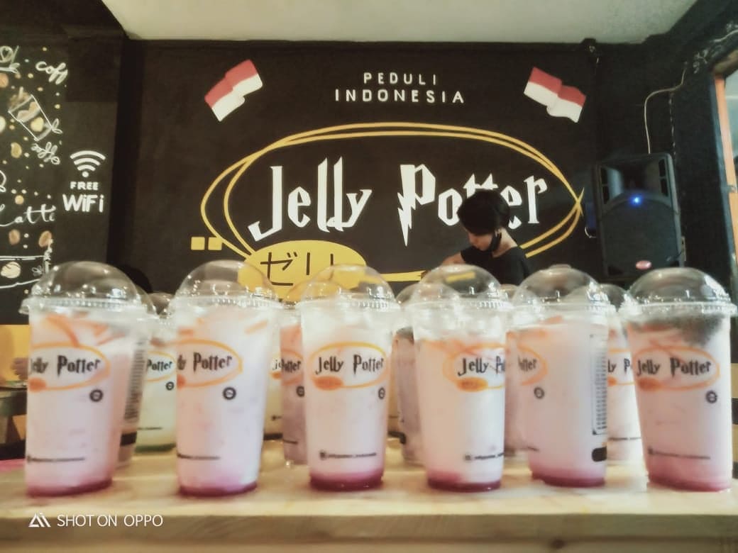 KabareTegal, Jakarta – Jika lewat kawasan Duri Kosambi Baru, Cengkareng, Jakarta Barat, kita dapat menemukan sebuah produk minuman siap minum yakni Jelly Potter. Namun berbeda dengan gerai yang ada di seluruh Indonesia, di sini gerai milik pria bernama Antonius didirikan dalam bentuk kafe.