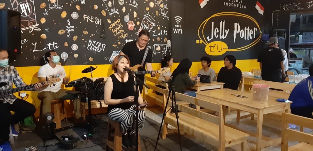 “Saya sengaja menyediakan fasilitas seperti live musik, free wifi dan lain-lain, memang ingin menjual suasana nyaman di Jelly Potter Duri Kosambi Baru milik saya ini. Buat saya kan nggak asyik aja konsumen hanya minum berjam-jam tapi tidak bisa menikmati kenyamanan,” ujar owner Jelly Potter Duri Kosambi Cengkareng, Jakarta Barat, Antonius saat meresmikan pembukaan kafe miliknya, Sabtu (5/9/2020).