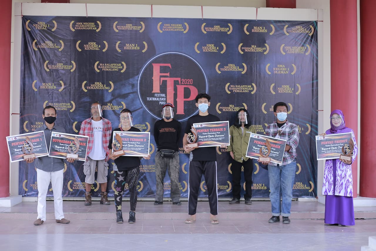 Pada akhir penutupan dan penghargaan (21-11-2020) juri memutuskan Penyaji Terbaik 1 diberikan pada MA Pondok Pabelan Magelang, Penyaji terbaik 2 SMKN 4 Kendal, Penyaji Terbaik 3 SMAN 1 Kota Tegal, Penyaji Favorit SMAN 1 Sleman, Pemain terbaik SMK Muhammadiyah Kramat Kabupaten Tegal dan MA Salafiyah Pemalang, sedangkan Sutradara terbaik diberikan Munir MA Pondok Pabelan Magelang