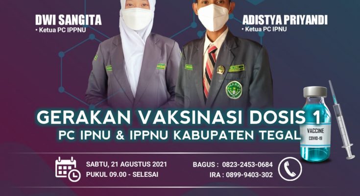 KabareTegal – Vaksinasi sangat bermanfaat untuk memutus mata rantai penularan penyakit dan menghentikan wabah Pandemi Covid-19. vaksin sebagai bentuk ikhtiar kesehatan untuk Indonesia Bangkit dan ini sudah dilegalkan oleh MUI, PBNU bahwa vaksin adalah halal. Untuk itu, Pimpinan Cabang Ikatan Pelajar Nahdlatul Ulama (IPNU) dan Ikatan Pelajar Putri Nahdlatul Ulama (IPPNU) Kabupaten Tegal bekerjasama dengan PKB menggelar vaksinasi dosis 1.