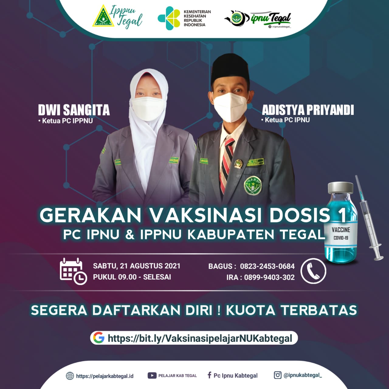 KabareTegal – Vaksinasi sangat bermanfaat untuk memutus mata rantai penularan penyakit dan menghentikan wabah Pandemi Covid-19. vaksin sebagai bentuk ikhtiar kesehatan untuk Indonesia Bangkit dan ini sudah dilegalkan oleh MUI, PBNU bahwa vaksin adalah halal. Untuk itu, Pimpinan Cabang Ikatan Pelajar Nahdlatul Ulama (IPNU) dan Ikatan Pelajar Putri Nahdlatul Ulama (IPPNU) Kabupaten Tegal bekerjasama dengan PKB menggelar vaksinasi dosis 1.
