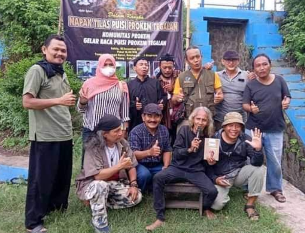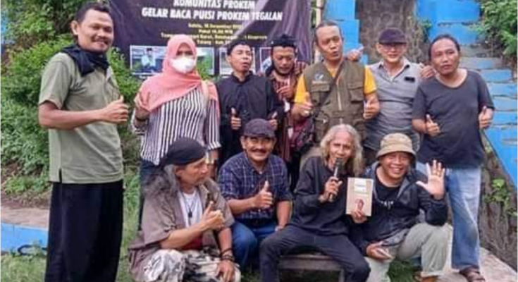Ada keramaian Ahad Siang di Prepil Kaligung Jalan Projosumarto 2 Desa Pesayangan Kec. Talang Kab. Tegal (18/12/2021). Sejumlah praktisi hadir siang sehabis hujan itu, mereka mengapresiasi gelaran Napak Tilas Pembacaan Puisi Prokem Tegalan yang digelar Komunitas Puisi Prokem Tegal.
