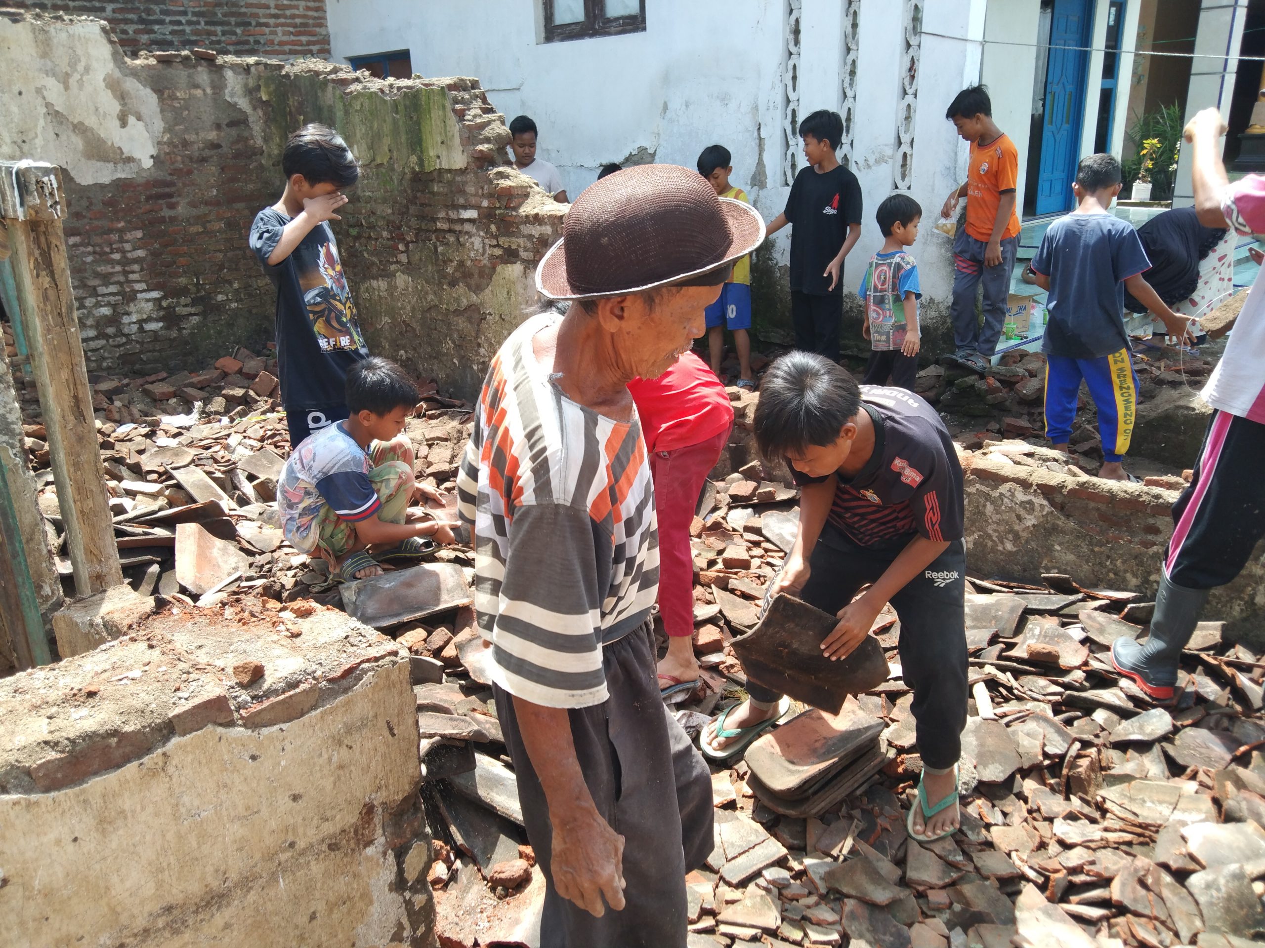 Keesokan harinya, beberapa warga tua muda bahkan anak-anak melakukan kerigan membersihkan puing-puing reruntuhan rumah yang terkena bencana angin puting beliung.   (Mardja)