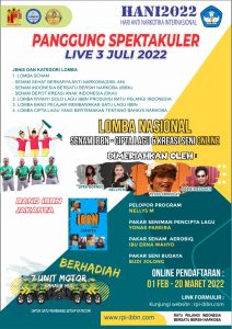KabareTegal – Dalam rangka memperingati Hari Anti Narkotika Internasional (HANI) yang jatuh pada bulan Juli 2022, Indonesia Bersatu Bersih Narkoba (IBBN) siap menggelar Lomba Cipta Lagu Anti Narkoba. Lomba ini terbuka untuk umum dan pendaftarannya gratis, dengan harapan dapat ikut memberi motivasi dalam upaya memberantas dan memerangi narkoba.