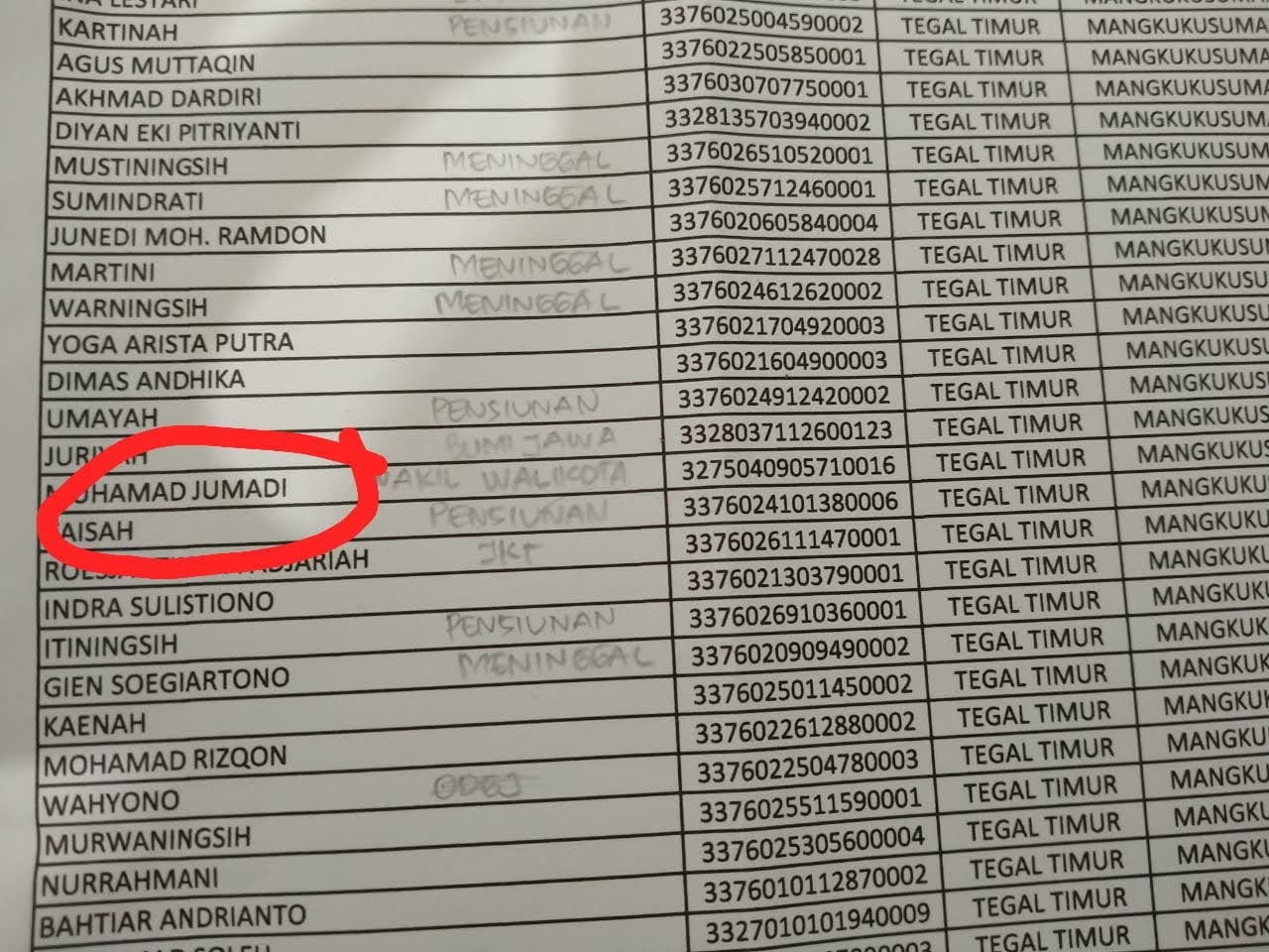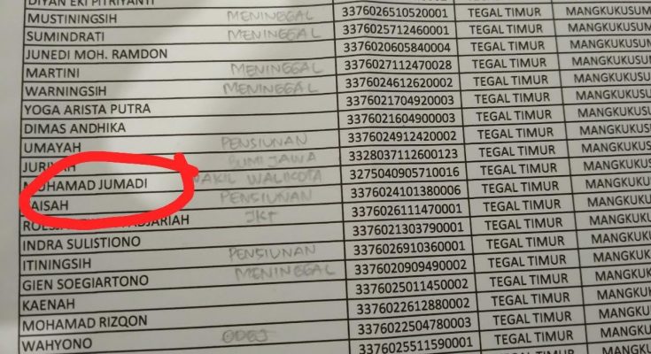 “Memang benar ada nama alamat dan NIK Pak Jumadi dalam daftar penerima manfaat Kemensos dan kami sudah koordinasi meminta pihak Kemensos untuk mendelet nama Pak Jumadi dari daftar penerima manfaat, ” kata Bajari.