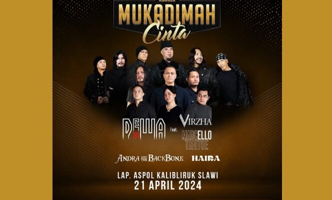 KabareTegal – Dewa 19 merupakan salah satu band legendaris Indonesia yang tentu sangat ditunggu konsernya. Kali ini, band yang digawangi Ahmad Dhani itu siap menggelar konser bertajuk ‘Mukadimah Cinta’ di Slawi, Kabupaten Tegal pada tanggal 21 April 2024.