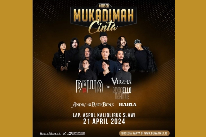 Project Director Konser ‘Mukadimah Cinta’ Candra, menyampaikan bahwa konser ini tidak sekadar hiburan, melainkan juga sebagai perayaan budaya dan musik di Kabupaten Tegal. “Dewa 19, yang telah absen lebih dari 17 tahun dalam menggelar konser di Tegal, akan menyajikan penampilan memukau, diiringi oleh suara emas dari Ello dan Virzha, serta Andra & The Backbone dan Haira, “ kata Candra dalam keterangan tertulisnya, beberapa waktu yang lalu.