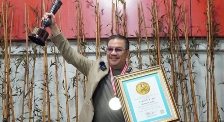 KabareTegal – Denny Januar Ali atau yang lebih dikenal dengan nama Denny JA menerima penghargaan The Legend Award sebagai konsultan politik yang berhasil memenangkan capres-cawapres lima kali berturut-turut.