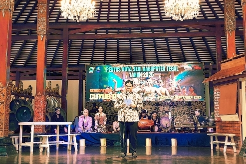 “Saya turut senang sekali hari ini bisa bertemu dengan kalian semua di Anjungan Jawa Tengah Taman Mini Indonesia Indah, “ kata Wakil Bupati Tegal Ahmad Kholid mengawali sambutannya dalam acara Pentas Duta Seni dan Pameran Ekraf Kabupaten Tegal di Anjungan Jawa Tengah, TMII, Minggu (21/9/2025).